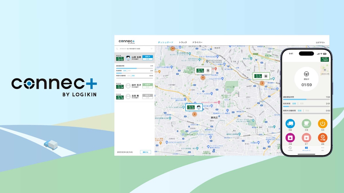| connec+(コネクト)利用料 | ドライバーのスマートフォンアプリと管理者のPC画面を連携し、運行状況をリアルタイムで可視化 |