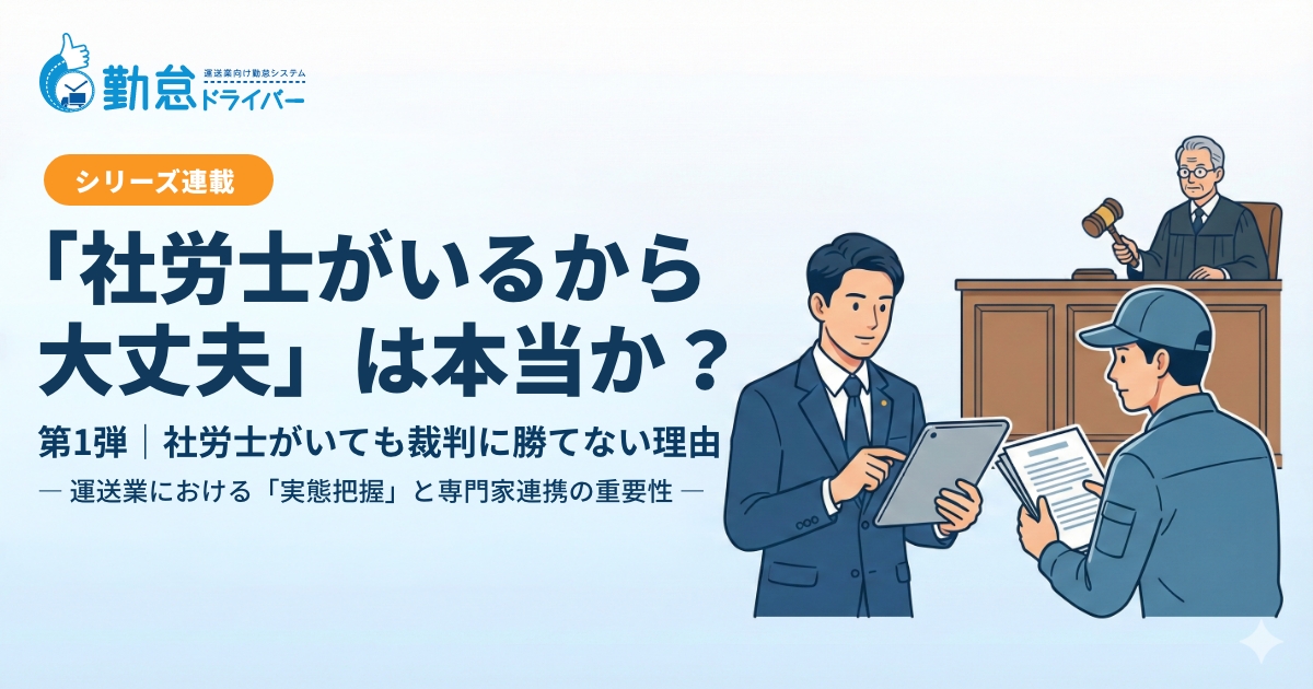本シリーズでは、この「社労士がいるから大丈夫」という言葉を出発点に、運送業の労務管理において